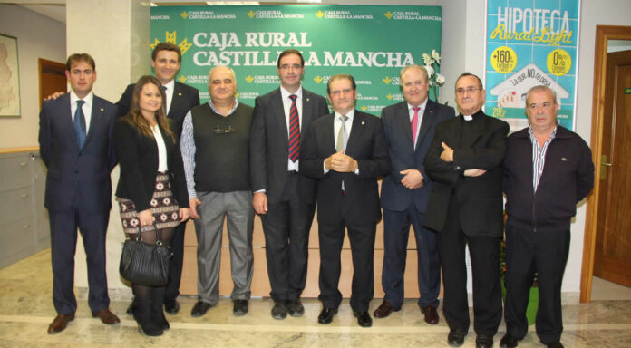 Recibidos por el presidente de Caja Rural Castilla-La Mancha, Andrés Gómez Mora, y el director general de la entidad, Víctor Manuel Martín López, en el acto se dieron cita el presidente de la Diputación Provincial de Cuenca, Benjamín Prieto Valencia, y el alcalde de Mota del Cuervo, Miguel Antonio Olivares Cobo.