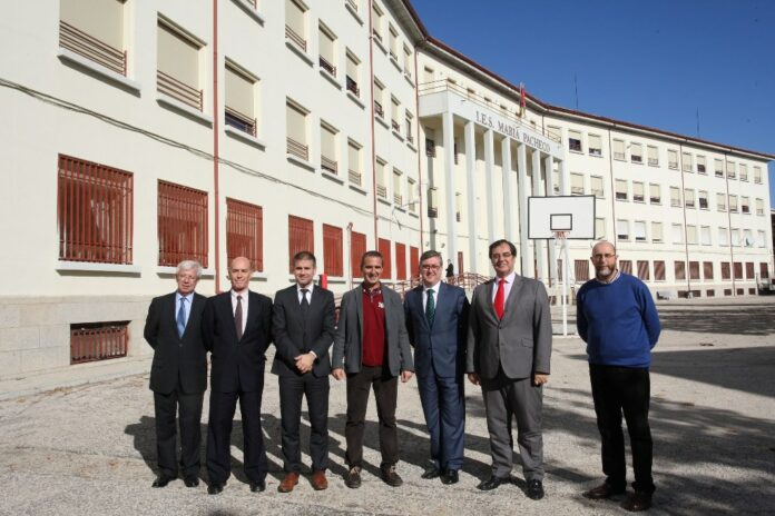 Toledo, 18-11-2014.- El consejero de Educación, Cultura y Deportes, Marcial Marin (3d) durante su visita al IES María Pacheco de Toledo, junto al director del centro, Pedro Leal (c); el director general de Recursos Humanos, Matías Jiménez (3i) y el delegado de la Junta de Comunidades, Fernando Jou (2d). (Foto: Álvaro Ruiz // JCCM)