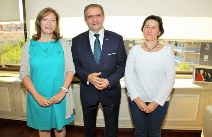 El presidente de Caja Rural Castilla-La Mancha, Andrés Gómez Mora, recibió en la sede central de la entidad financiera a la presidenta de la Asociación Provincial de Padres con Niños y Adultos Minusválidos de Toledo (APANAS), María del Mar Azaña, y su gerente, Sagrario Balmaseda, para intercambiar impresiones sobre la celebración este año del 50 aniversario de ambas entidades.