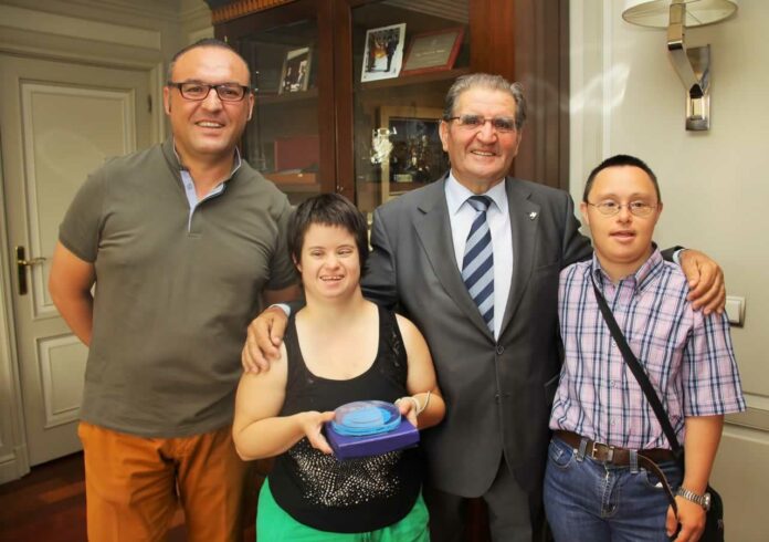 El presidente de Caja Rural Castilla-La Mancha y su Fundación, Andrés Gómez Mora, recibió hoy de manos del presidente de la Asociación Síndrome de Down de Toledo, Lucas Gilaranz, el premio ‘Personalidad Colaboradora 2015’ en reconocimiento a su “sensibilidad personal y apoyo” a este colectivo.