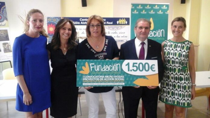 El presidente de Caja Rural Castilla-La Mancha y su Fundación, Andrés Gómez Mora, entregó a la Asociación Provincial de Familiares de Enfermos de Alzheimer de Ciudad Real (AFACR) uno de los premios de la primera Convocatoria de Micro Ayudas para Proyectos de Iniciativas Sociales 2015.