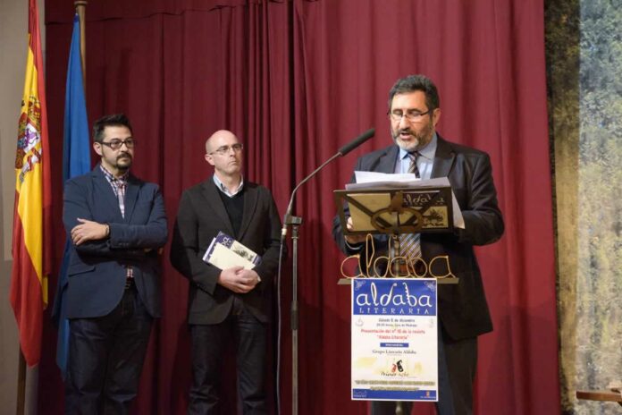 A la entrega de premios le siguió la presentación de la nueva revista Aldaba Literaria, que bajo el título: “En el lugar de don Quijote”. Según el polifacético representante de Aldaba, que además de presentar el acto y participar en la publicación, es responsable de la maquetación y diseño de la revista, “este número gira en torno al caballero de la triste figura en su mundo, gira en torno a la lucha, que probablemente mantuvo Cervantes por unos ideales y que reflejó en su hidalgo”.
