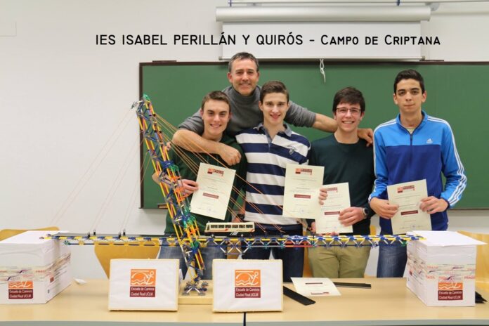 La Escuela Técnica Superior de Caminos, Canales y Puertos de Ciudad Real acoge mañana la final de su primer concurso de puentes dirigido a alumnos de cuarto de Educación Secundaria Obligatoria (ESO) y Bachillerato, una iniciativa en la que han participado un total de veinticuatro grupos de cuatro alumnos cada uno y procedentes de quince institutos de la provincia. Siguiendo las bases del concurso, los preuniversitarios tenían que construir un puente de una longitud máxima de 180 centímetros y que resistiera una carga mínima de cuatro kilos. Además, debían realizarlo en piezas de K’nex, el juego de construcción inventado por Joel Glickman en la línea del popular Meccano.
