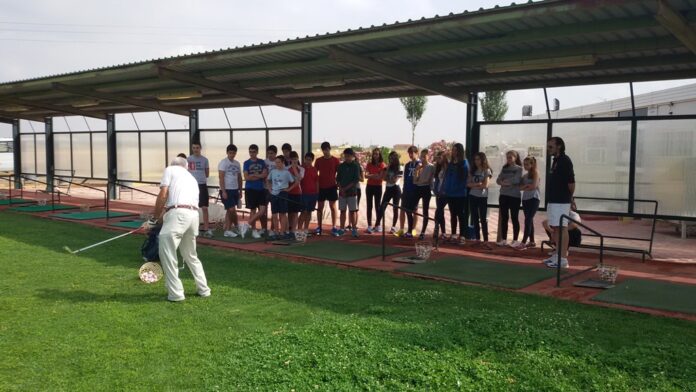 El pasado jueves, 11 de junio, alumnos y alumnas del Eladio Cabañero visitaron el campo de prácticas de golf de nuestra localidad. Esta actividad fue organizada por el Patronato Municipal de Deportes, la Federación de Golf de Castilla La Mancha y el Club de Golf Tomelloso, que fueron los responsables del transporte de los escolares desde el Instituto al campo de prácticas y viceversa.