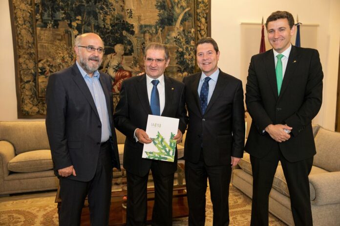 El presidente de la Junta de Comunidades, Emiliano García-Page, ha recibido del presidente de Caja Rural Castilla-La Mancha, Andrés Gómez Mora, y su director general, Víctor Manuel Martín López, la Memoria Anual de la entidad correspondiente al ejercicio 2015, que será presentada a la Asamblea General de socios de la cooperativa de crédito convocada para el 29 de abril.