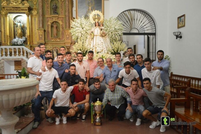 Este viernes el Atlético Tomelloso realizaba la tradicional visita a la patrona de nuestra ciudad. Después de la ofrenda en la LI Fiesta de la Vendimia del pasado miércoles, el presidente Cristóbal Moraga a la cabeza de la Junta Directiva del club y con las plantillas de los cuatro equipos de fútbol que juegan competición oficial esta temporada presentes, pidió a la Virgen de las Viñas, por los suyos, aliento durante toda la temporada y protección ante las lesiones.