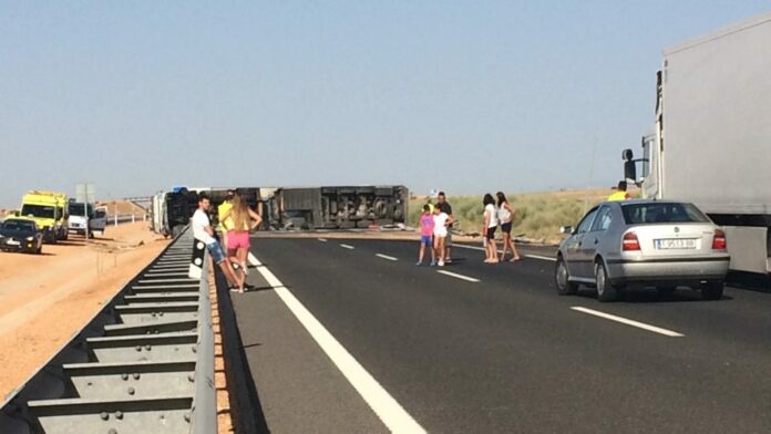 Un camión que transportaba fruta ha volcado en la autovía A-43 a la altura de Tomelloso, obligando a cortar totalmente los dos carriles en sentido Ciudad Real.
