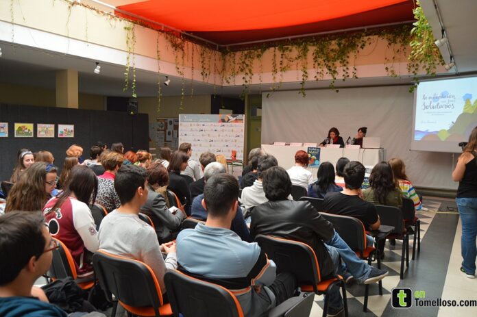 Después de la charla se llevó a cabo la presentación de la novela “La magia de dos mundos. Los ojos de cristal” de Carmen Hergueta. La escritora, según nos contó la jefa de estudios, es de La Solana y antigua alumna de la Escuela de Arte, que compatibiliza su pasión, la escritura, con su trabajo. Hergueta autoeditó la novela, con ilustraciones de Rocío Díaz, también antigua alumna de la EASDAL.