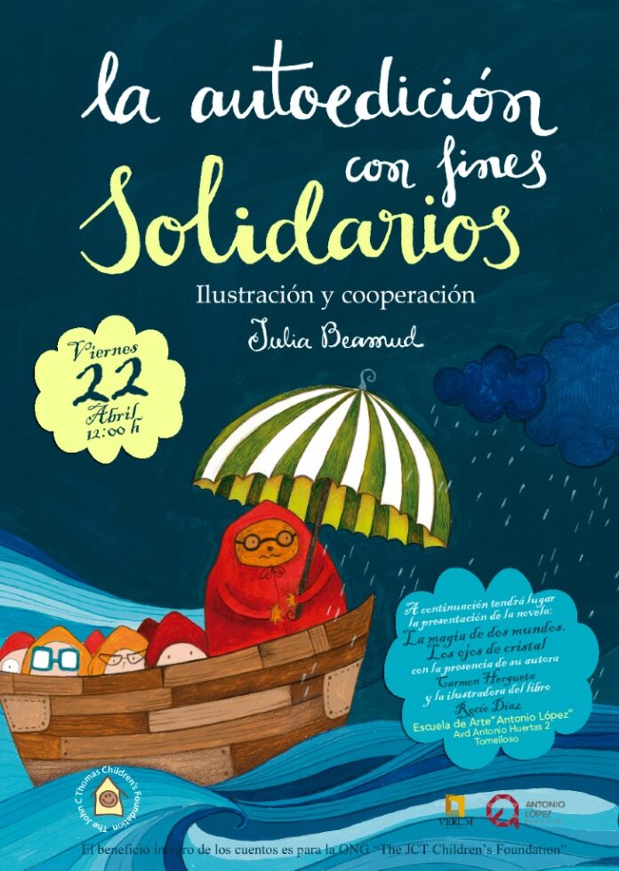 La Escuela de Arte Antonio López de Tomelloso acogerá el viernes 22 de febrero a las 12.00 h y con motivo de la celebración del Día del Libro la charla “Autoedición con fines solidarios” a cargo de Julia Beamud, Profesora de la EA de Cuenca. Julia ha realizado dos cuentos ilustrados en beneficio de la ONG “The JCT Children’s Foundation” que recauda fondos para proyectos con niños huérfanos y vulnerables en Malawi. La autora de los dos cuentos hablará del proceso que implica la autoedición de una obra, y de como aplicar la ilustración y la edición de un cuento con fines solidarios.