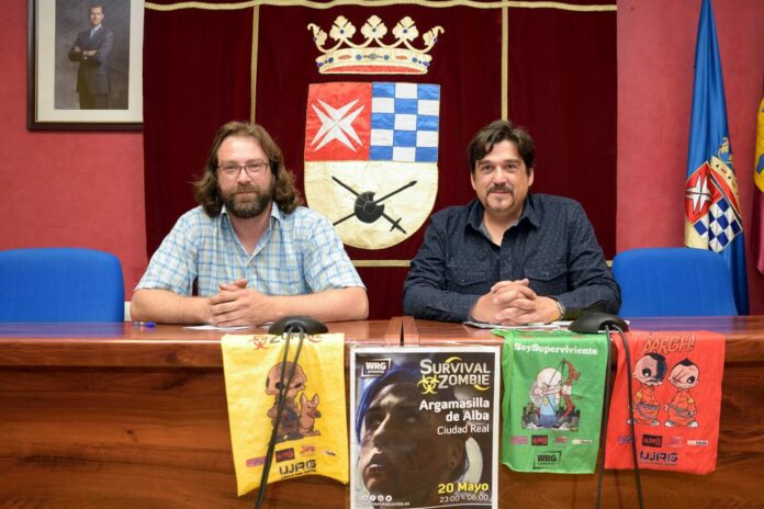 El concejal de Juventud, Enrique Peces, y el representante de WRG (World Real Games) De Acero Producciones, Luis Eduardo González, han presentado este lunes en el Ayuntamiento de Argamasilla de Alba la segunda edición del Survival Zombie, que se celebrará el 20 de mayo (de 23.00 a 06.00 h. del domingo) en la localidad.