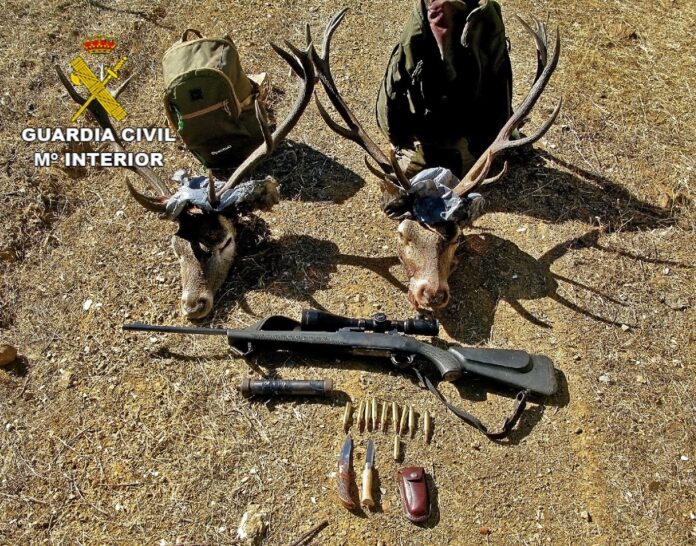 La Guardia Civil de Ciudad Real ha detenido a dos personas como presuntas autoras de un delito de caza furtiva, incautándoles dos cabezas de ciervos machos en una finca de la localidad de Almodóvar del Campo.
