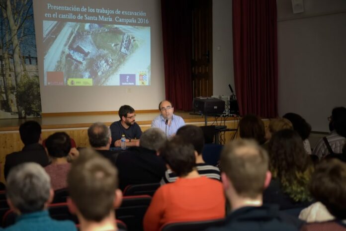 Parte del equipo arqueológico que ha realizado las investigaciones y excavaciones en el castillo de Santa María, ofreció, este viernes en la Casa de Medrano, una charla para presentar los trabajos llevados a cabo durante el pasado mes de noviembre, y de los que se deduce “con casi total certeza” que este es el castillo nombrado en unos documentos del año 1.215 bajo la denominación del “castillo del campo de Santa María”.