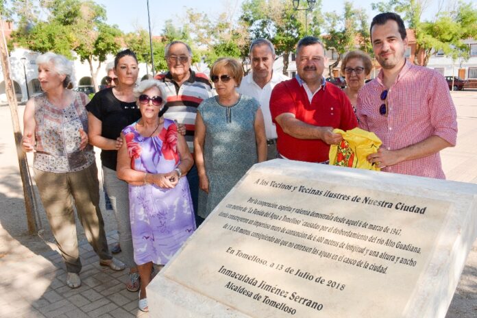 Con un sencillo acto, ayer se descubrió en la plaza del Carmen un monolito que recuerda la gesta de la construcción del muro que evitó una catástrofe como consecuencia del desbordamiento del río Guadiana en 1947. El suceso, conocido popularmente como la “venía”, supuso la construcción de un muro de hormigón en el que participó todo el pueblo de Tomelloso.