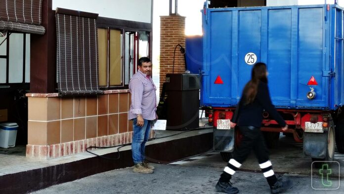Con la vendimia a punto de acaba, nos vamos hasta Bodegas San José, o «El Grupo», donde acaba de llegar Esteban Lomas, su presidente, con su remolque cargado de uvas.