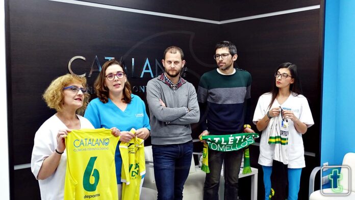 El Atlético Tomelloso no para de sumar apoyos a su proyecto deportivo y social. El último de ellos ha sido rubricado en la tarde del lunes ante un nutrido grupo de medios de comunicación, el cual ha podido comprobar que las relaciones del club con el tejido empresarial de la ciudad a la que representa pasan por un buen momento. De hecho, Catalano Clínicas Odontológicas es un patrocinador global que está presente en las secciones de fútbol, baloncesto, natación y triatlón. Una estrecha colaboración que se antoja fundamental para que el club cumpla sus objetivos en lo que a promoción de la práctica deportiva y transmisión de valores saludables se refiere.