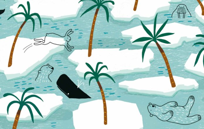 Finalizamos este pequeño paseo por las librerías, descubriendo Palmeras en el Polo Norte, de Marc ter Horst y Wendy Panders, una verdadera joya editorial que habla de contaminación, devastadores huracanes, de volcanes, de iceberg, mamuts o historia de la ciencia. Un libro que nos cuenta las vueltas que ha dado la Tierra, olas de calor, mares que se tiran pedos, liebres silbadoras. El clima ha cambiado constantemente, interviniendo cuestiones físicas, químicas, geográficas, geológicas o biológicas.