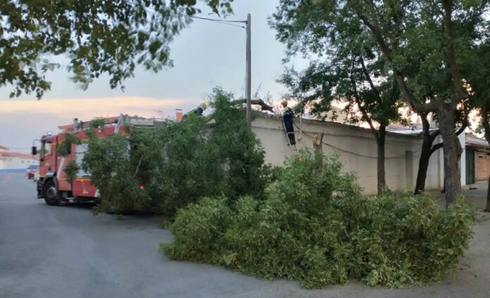 Los bomberos del parque de Tomelloso, han intervenido esta tarde por caída de árbol en Argamasilla de Alba, en la calle Alfonso XII sobre un tejado, cables eléctricos y de telefonía, obstruyendo la vía pública.