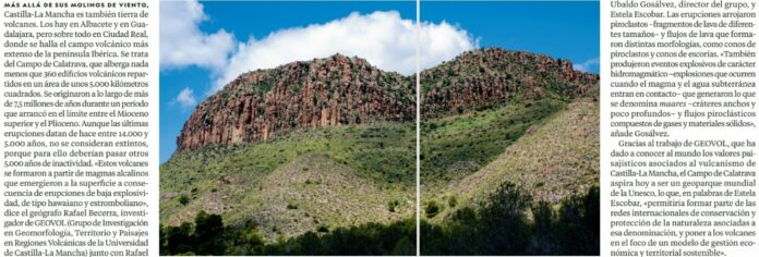La revista pone en valor la riqueza y singularidad del lugar, así como la labor de Geovol por dar a conocer al mundo los valores paisajísticos del vulcanismo de Castilla-La Mancha, que sitúan al Campo de Calatrava como aspirante a ser geoparque mundial de la Unesco.