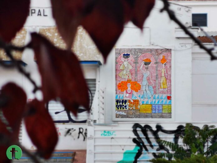 Ahora que han dado comienzo las obras del antiguo Mercado Municipal, traemos a la sección de «Una foto a la semana» el mural que preside la fachada principal, y que, damos por hecho, seguirá «presidiendo» el nuevo espacio multifuncional, tras su rehabilitación.