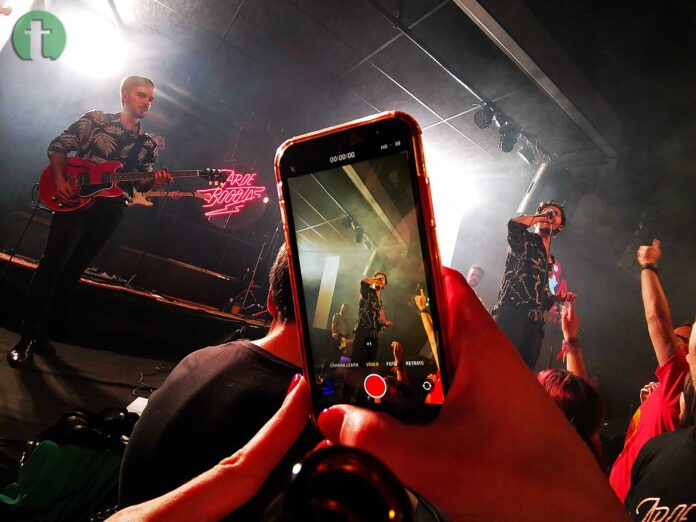 En la imagen, una «foto de una foto» del concierto de Arde Bogotá, una, muy buena banda de rock, que ya está dando mucho que hablar, a pesar de solo un disco publicado («La Noche» 2022). Una de las sensaciones «indies» del momento, con una combinación de letras claras, nada pomposas, y unas ganas de comerse el escenario brutales, que hacen participes a los asistentes que saltan y corean, al unisonó, todas sus canciones.