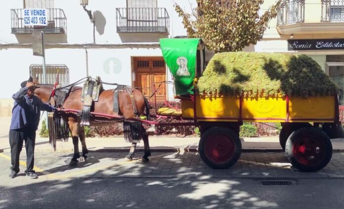 La visión de un viejo agricultor, esta mañana del 5 de septiembre, paseando por la Calle Don Victor su remolque lleno de uvas con un colmo «muy bien puesto» y su mula, es una tierna imagen del pasado más o menos reciente. La iniciativa de este señor es encomiable, y no es de extrañar ese orgullo que mostraba exhibiendo su remolque inmaculado, su mula perfectamente enjaezada, y su colmo de uvas a 4 aguas.