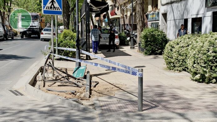 En torno al mediodía, el conductor de un coche se ha salido de la vía tras perder el control de su vehículo y se ha empotrado contra el vallado y varias señales situadas en la esquina de la calle Concordia con la avenida Antonio Huertas.