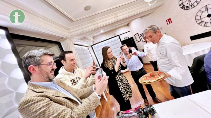Ante un reducido grupo de poco más de 20 comensales comenzó la degustación. El chef hizo la presentación de las pizzas que había seleccionado en las que había guiños a nuestra tierra y nuestros grandes productos. Comenzamos con una primera pizza muy emblemática, la Pizza El Greco, creada por el maestro con motivo del centenario del artista cretense. En la presentación Marquinetti nos habló del periplo vital del artista y el homenaje en forma de pizza tanto en la paleta como en los ingredientes de la misma, un recorrido por la isla griega de Creta, Venecia y Toledo, con ingredientes como el yogur griego, las aceitunas negras, el queso mozzarella o la perdiz. El vino elegido por Parra para la ocasión fue el Verum Las TinadasAirén de Pie Franco 2021,un maridaje perfecto con sabores de la tierra y matices que nos recuerdan donde estamos.