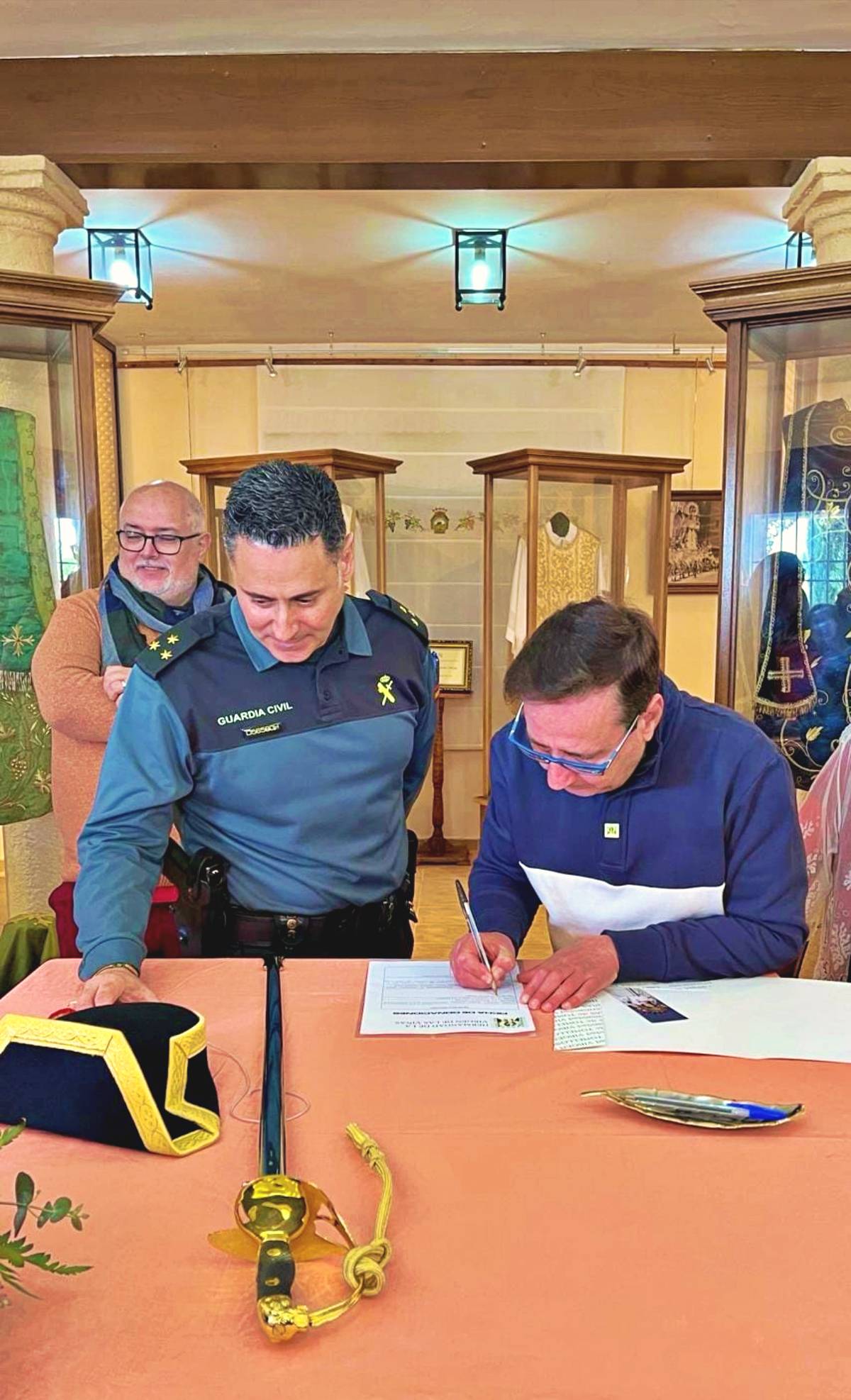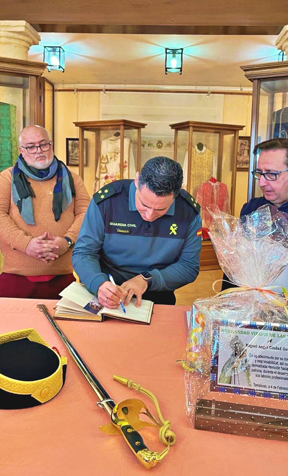 En un emotivo acto, la Hermandad de la Virgen de las Viñas ha recibido una donación especial por parte de Miguel Ángel Ciudad Gutiérrez, recién ascendido a Capitán de la Guardia Civil. Rodeado de su familia y amigos, el capitán entregó su tricornio de gala y un sable de oficial al mayordomo de la Hermandad, Félix Godoy, así como al presidente de la misma, Alejandro Ramírez. Estos objetos serán expuestos en el museo de la Hermandad, enriqueciendo así el patrimonio dedicado a la Virgen.
