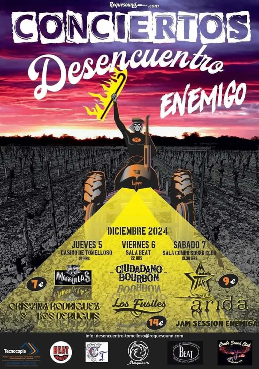 Tomelloso vuelve a ser sede del Desencuentro Enemigo, un festival itinerante que celebra su XXII edición del 5 al 7 de diciembre de 2024. Este evento, organizado por la Asociación Cultural y Musical Desencuentro Enemigo, reúne a seguidores de Los Enemigos y amantes del rock en un ambiente de música y camaradería.