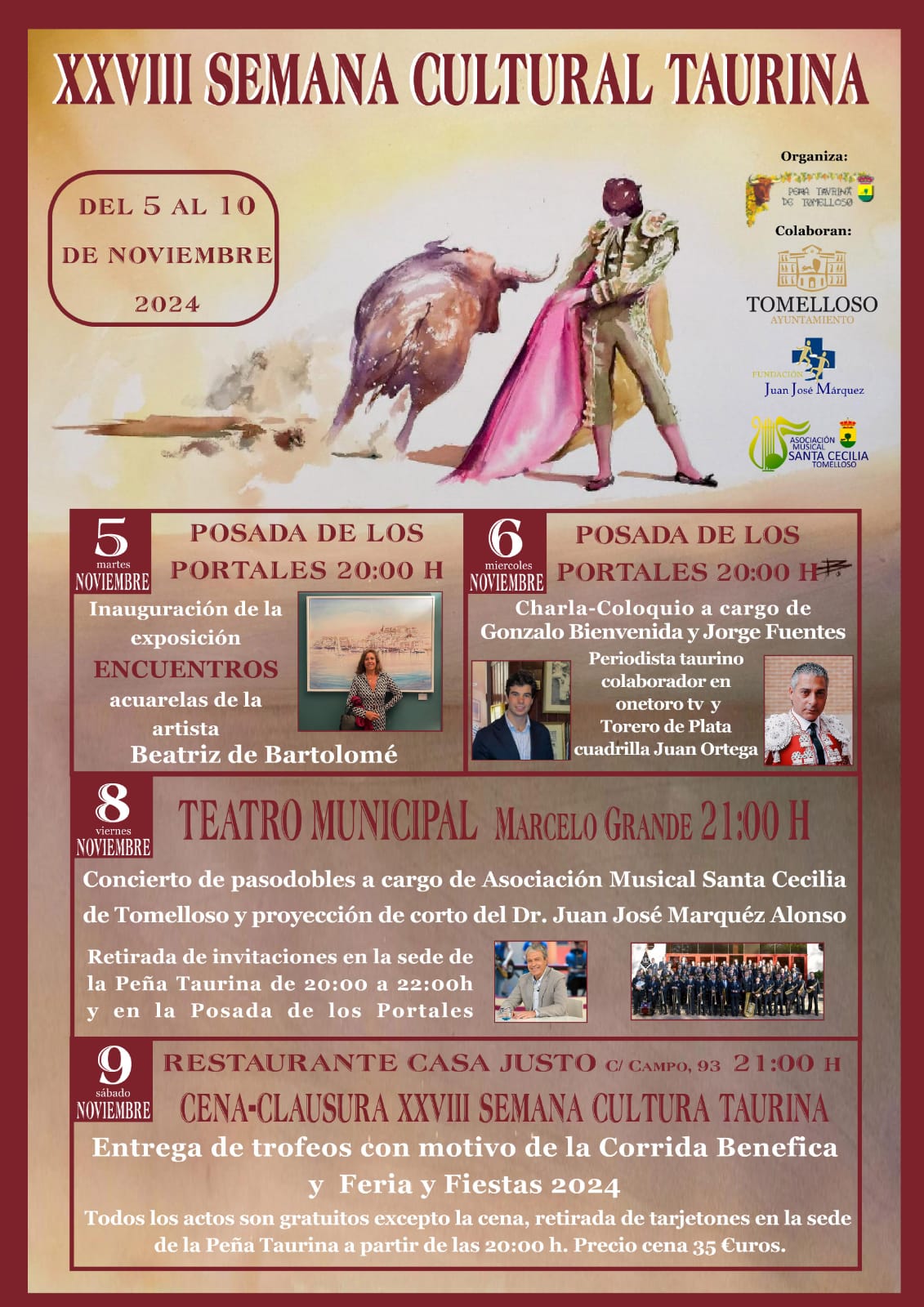 La Peña Taurina de Tomelloso invita a todos los interesados a participar en esta semana llena de actividades, que buscan no solo mantener viva la tradición taurina, sino también ofrecer una visión actualizada y respetuosa de esta manifestación cultural en Tomelloso. Todos los actos serán gratuitos, a excepción de la cena de clausura.