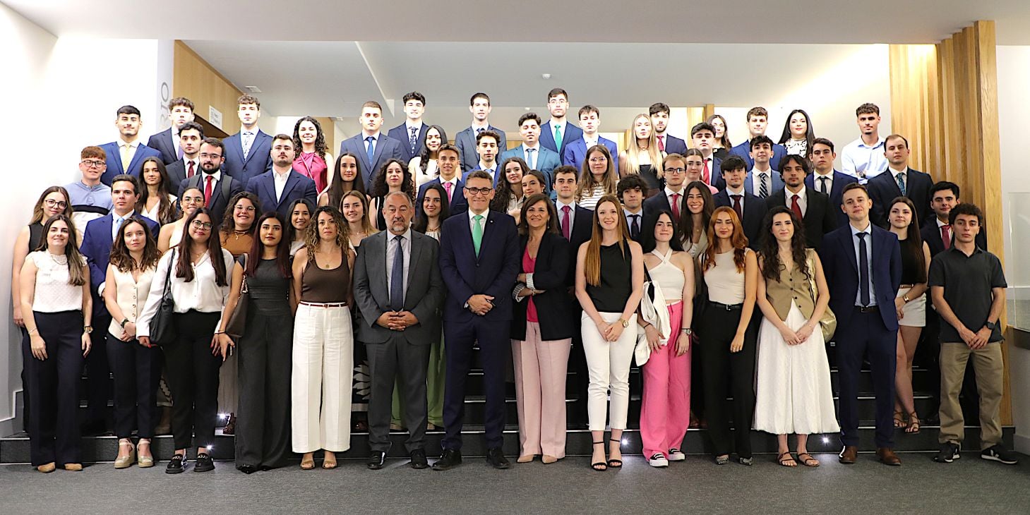 Por su parte, el rector de la UCLM agradeció a Eurocaja Rural la oportunidad que ofrece a egresados y egresadas de la UCLM y de otras universidades, así como reconoció «su apuesta por la retención del talento universitario y el futuro en nuestra región». «La UCLM es la universidad que tiene mayor porcentaje de estudiantes en prácticas, rondando el 60 %, y somos la tercera universidad del país en tasa de afiliación a la Seguridad Social, con una media del 82,5 %. En 2019 la cifra de tasa de afiliación de los egresados de grado era de un 59 % y ahora hemos alcanzado el 82,5 %, y este éxito parte de los planes formativos, del talento del alumnado y también de la colaboración de entidades como Eurocaja Rural, que ofrecen prácticas en un entorno profesional real. Aprovechad esta gran oportunidad siendo proactivos, porque es única, y producto de una alianza estratégica y vital entre universidad y Eurocaja Rural para formaros profesionalmente. Os deseamos todo lo mejor».