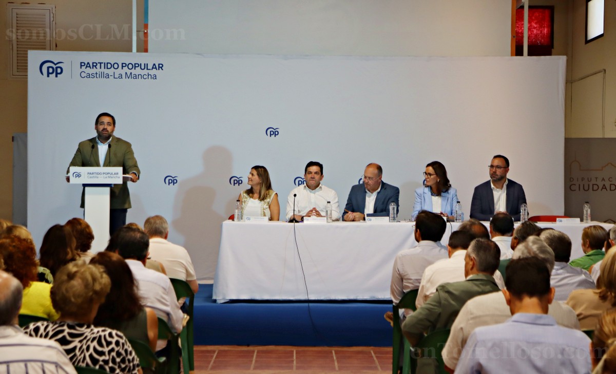 El acto ha reunido a toda la cúpula del PP de Castilla-La Mancha, junto a representantes del partido a nivel nacional. Han acompañado a Núñez en la mesa el secretario general del Partido Popular, Miguel Tellado, la vicesecretaria nacional de Política Social, Carmen Fúnez, la secretaria general del PP-CLM, Carolina Agudo, el presidente provincial y de la Diputación de Ciudad Real, Miguel Ángel Valverde, y el alcalde de Tomelloso, Javier Navarro, que ha ejercido como anfitrión.