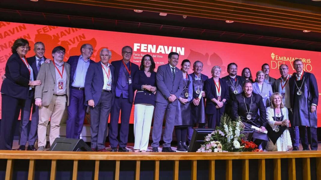 Los nuevos integrantes del Cuerpo Diplomático de los Embajadores del Vino de FENAVIN son el humorista Carlos Latre; los periodistas María Rey, Josep Pedrerol, Tomás Roncero, David Felipe Arranz y Víctor García (director general de Unicorn Content); la enóloga y bodeguera Meritxell Juvé; la cantante Rebeca Jiménez y el ejecutivo Sergio Oslé.