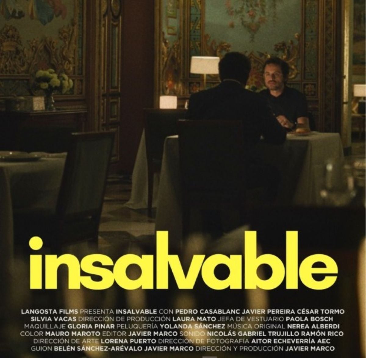 “Insalvable” narra el encuentro entre Mauro y Ángel en un lujoso restaurante, semanas después de que Mauro salvara la vida de Ángel en un acto heroico. La historia se desarrolla en un ambiente cargado de tensión y misterio, explorando las complejidades de la gratitud y las segundas oportunidades. La intensidad de esta relación está sostenida por las interpretaciones de Javier Pereira y Pedro Casablanc, ambos nominados a Mejor Interpretación Masculina, lo que refuerza el reconocimiento global del cortometraje.