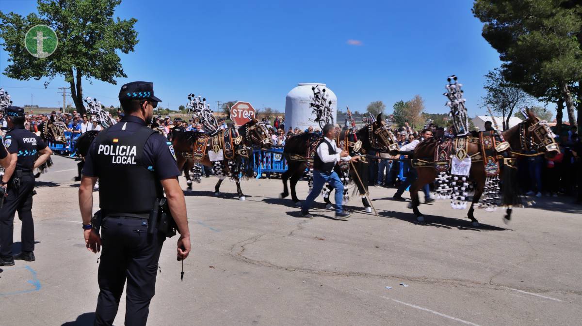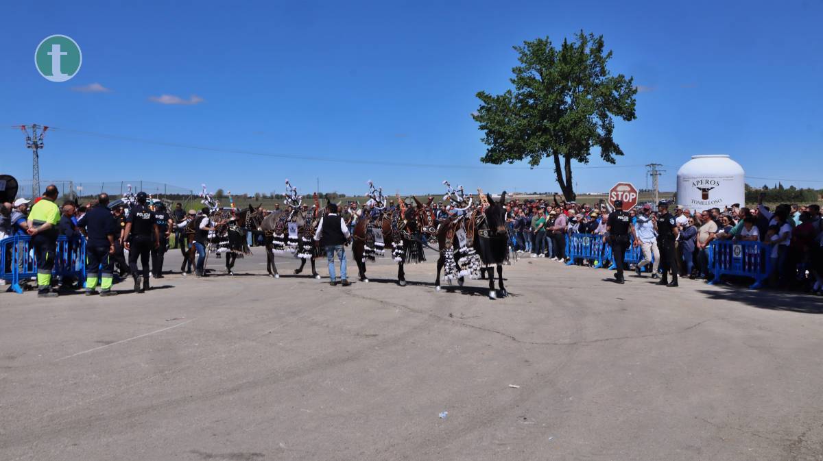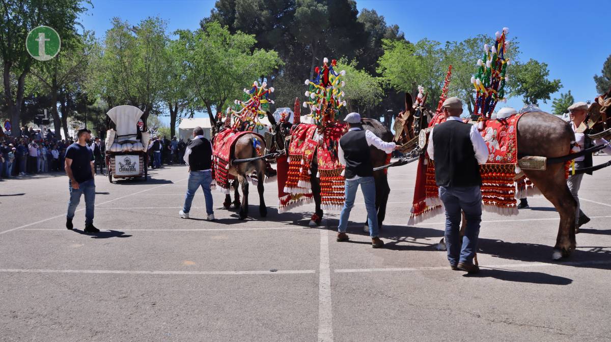 Poco antes de las 13:00 horas, hicieron su entrada en Pinilla las reatas engalanadas, una de las tradiciones más esperadas de la jornada. Entre ellas, destacó especialmente una «reata de hojalata», una creación original que sorprendió a la multitud congregada. Las reatas quedaron expuestas en el aparcamiento del santuario, permitiendo que miles de personas las admiraran a lo largo de la mañana.