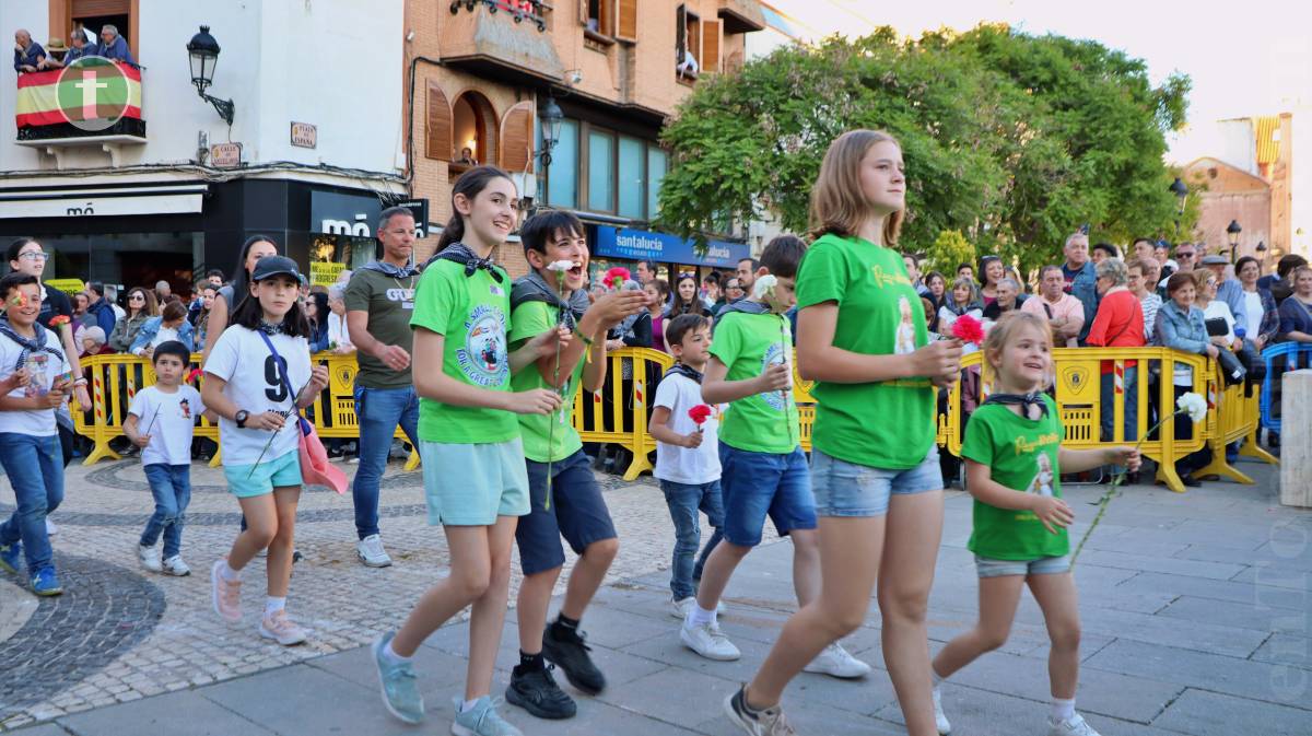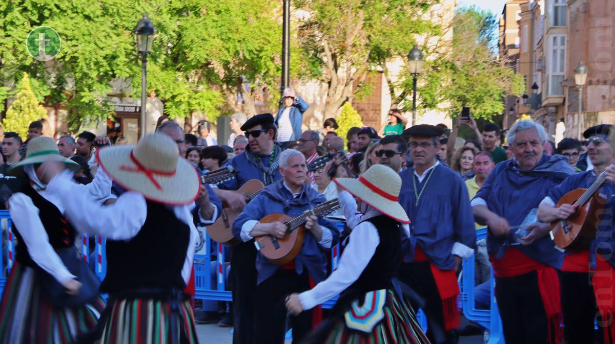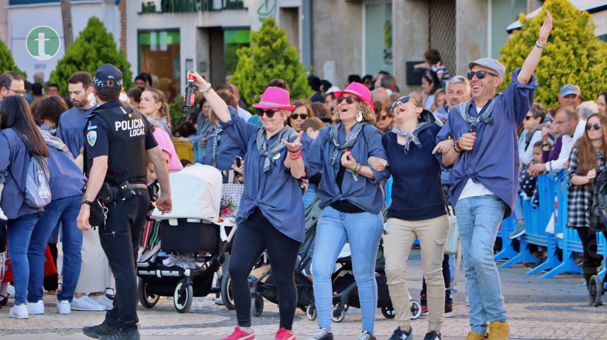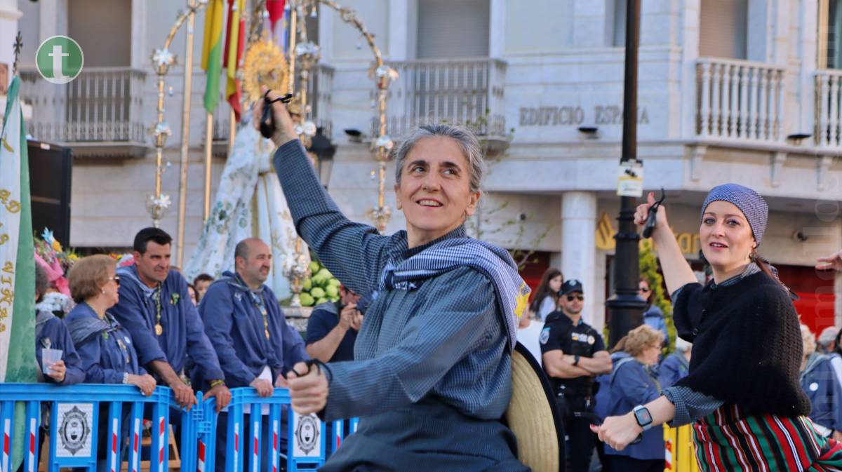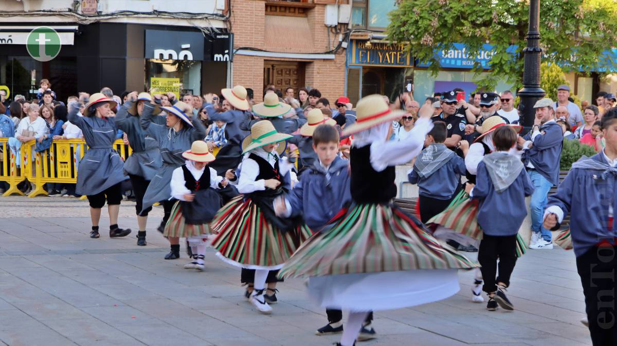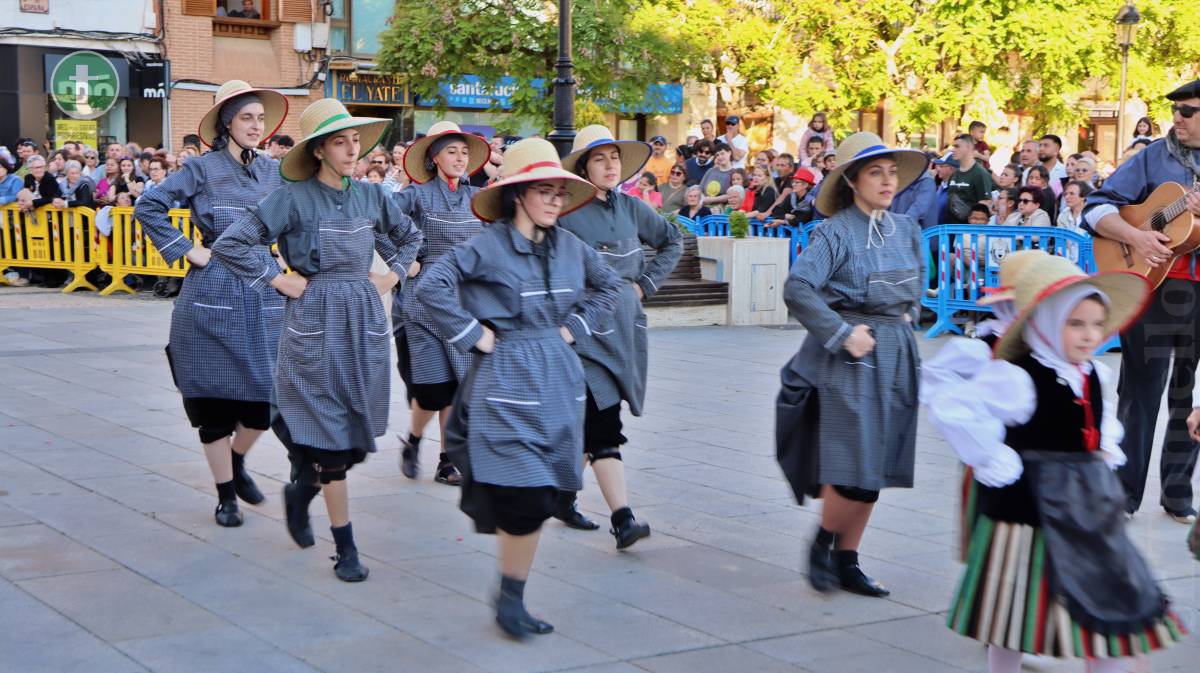 El desfile prosiguió con la participación de las madrinas y padrino de la Feria y Fiestas, que también saludaron a la Virgen. Los grupos folclóricos El Bombo y Virgen de las Viñas ofrecieron un emotivo baile tradicional frente a la patrona.