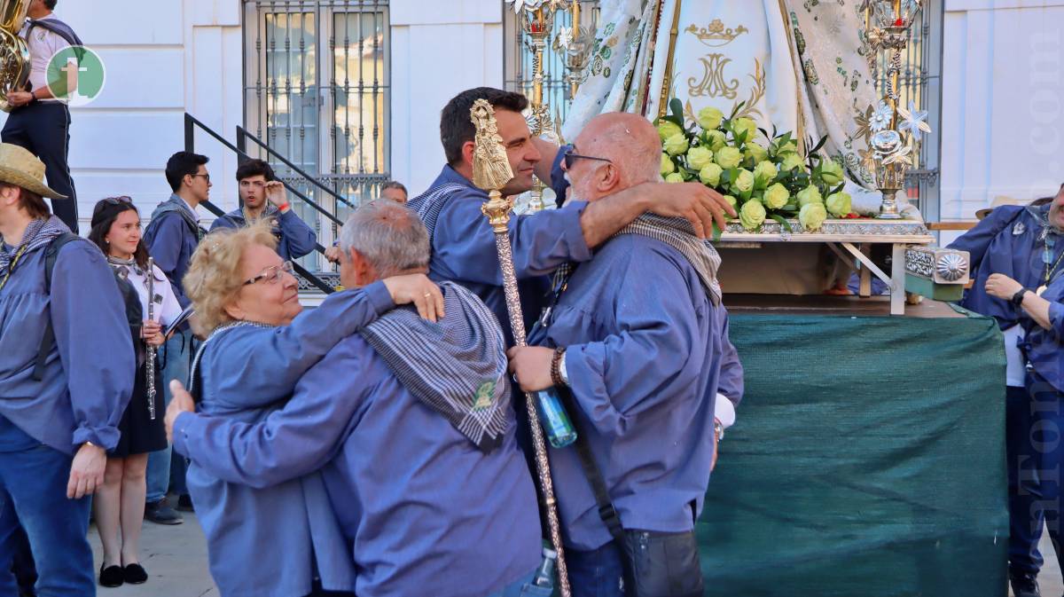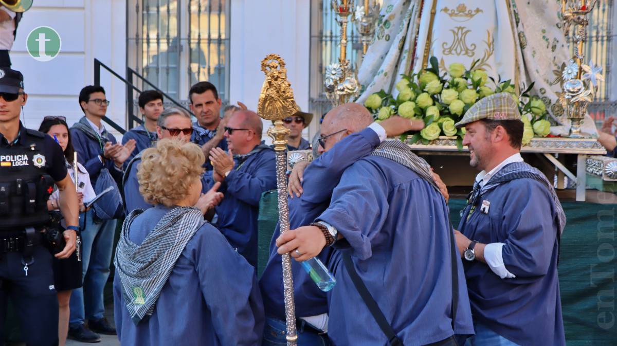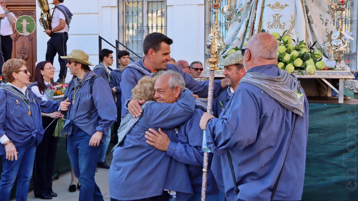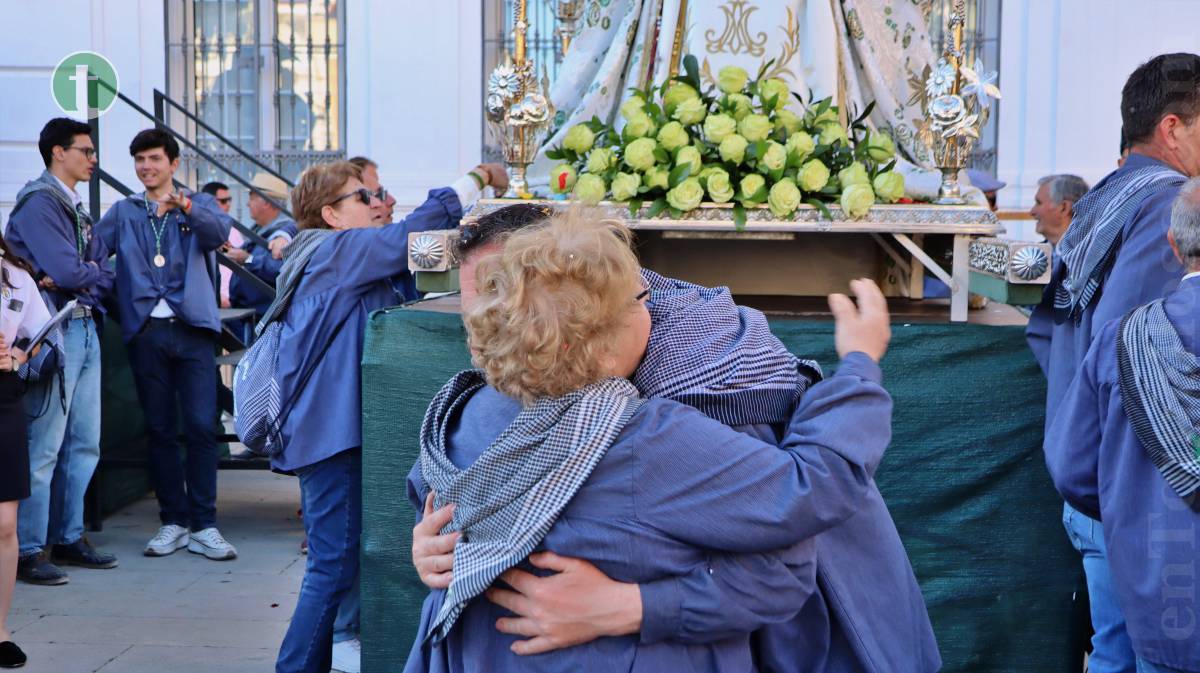 Tas la llegada, se vivieron momentos de emoción con abrazos entre miembros de la Hermandad y concejales del equipo de Gobierno, permaneciendo todos junto a la Virgen.
