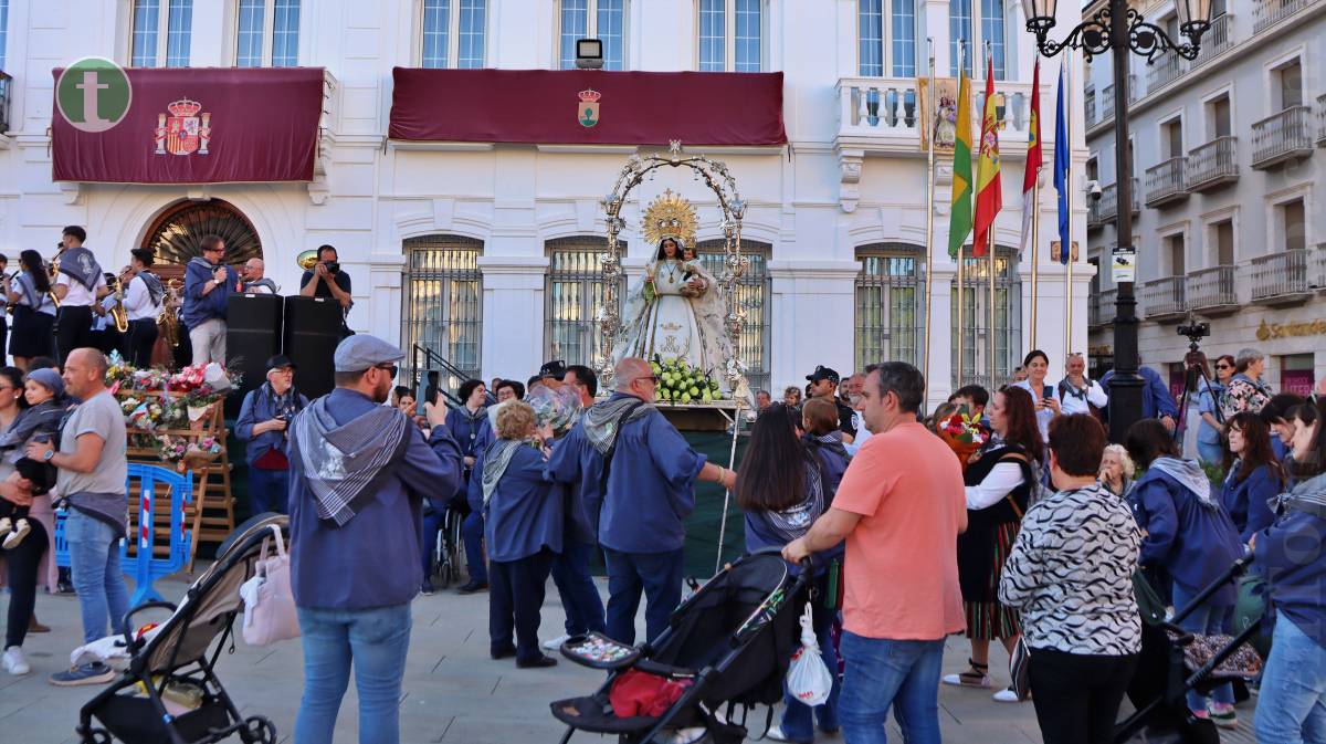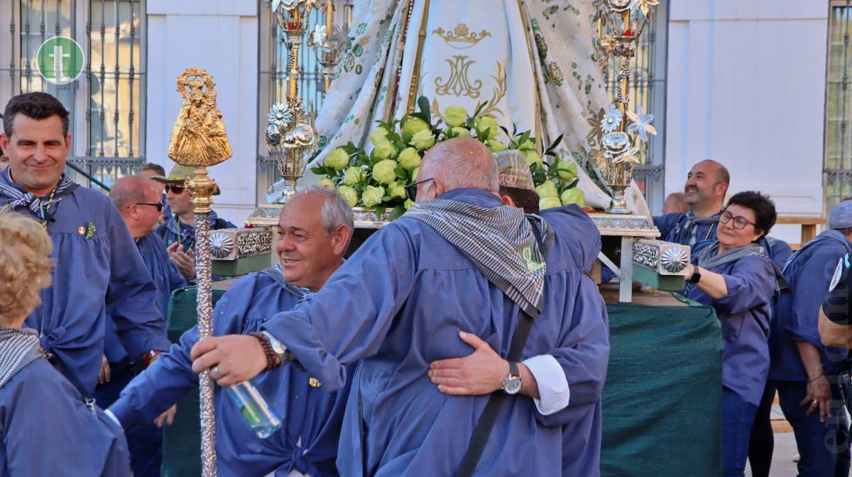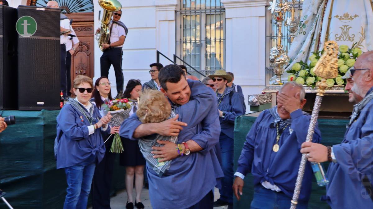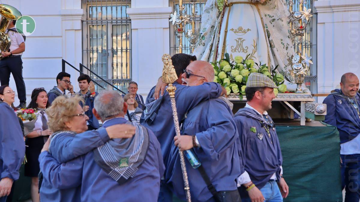 Tas la llegada, se vivieron momentos de emoción con abrazos entre miembros de la Hermandad y concejales del equipo de Gobierno, permaneciendo todos junto a la Virgen.