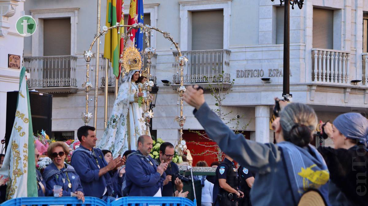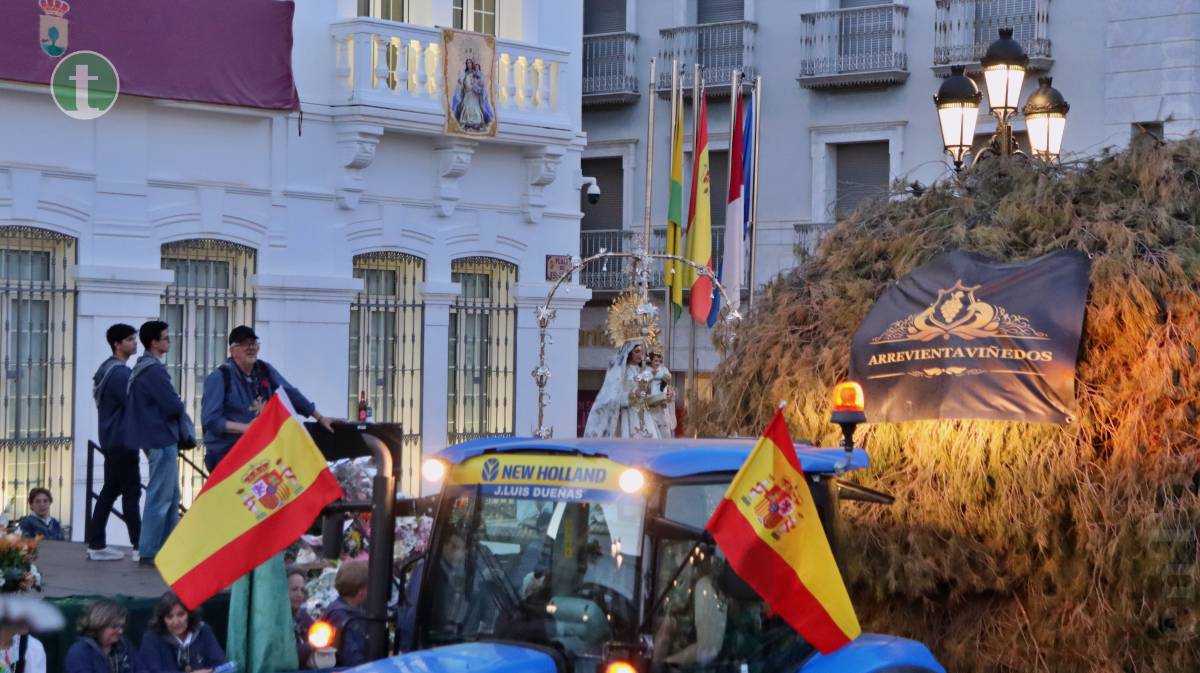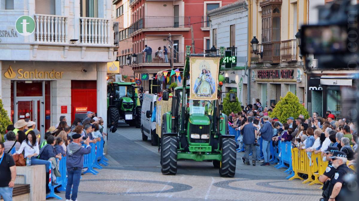 La patrona de Tomelloso, la Virgen de las Viñas, ha llegado este domingo 27 de abril a la ciudad, culminando una de las romerías más multitudinarias que se recuerdan. Cerca de las 19:30 horas, y bajo un ambiente de fervor y emoción, la comitiva entraba en una Plaza de España completamente abarrotada. También las calles Socuéllamos y avenida Virgen de las Viñas presentaban una impresionante concentración de público que no quiso perderse este momento tan especial.