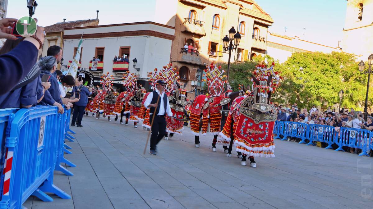 Posteriormente hicieron su entrada las reatas engalanadas, que se detuvieron frente a la imagen en señal de respeto. A continuación, un nutrido grupo de caballistas y carros tirados por caballos también desfiló ante la Virgen.