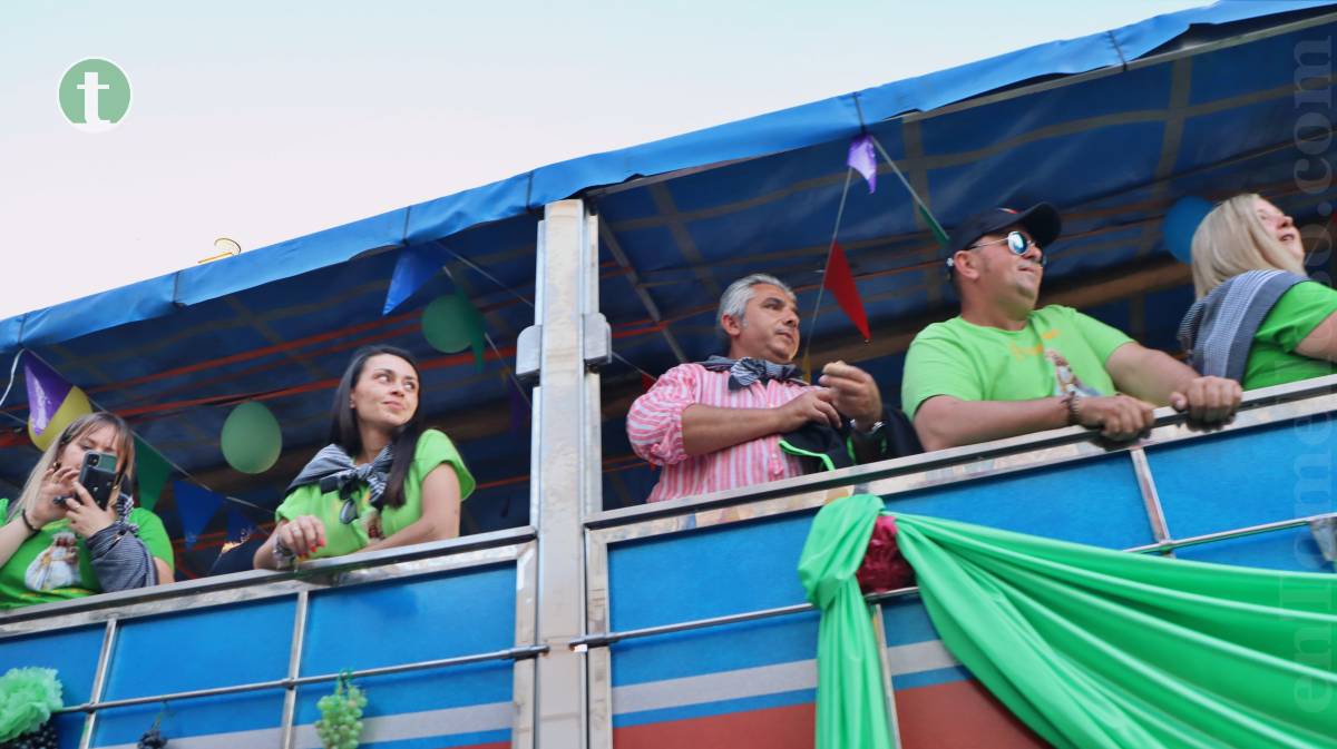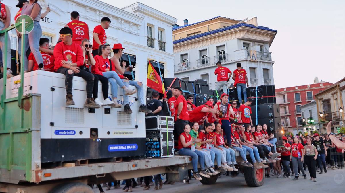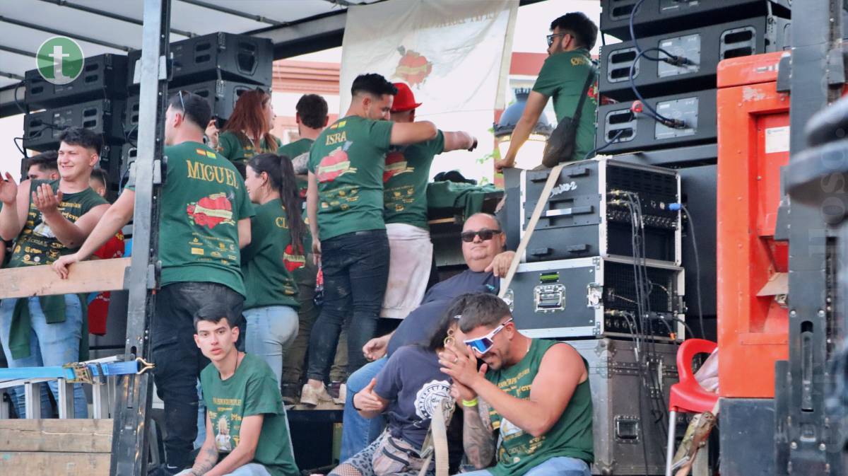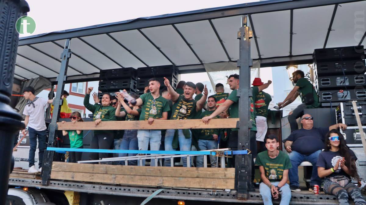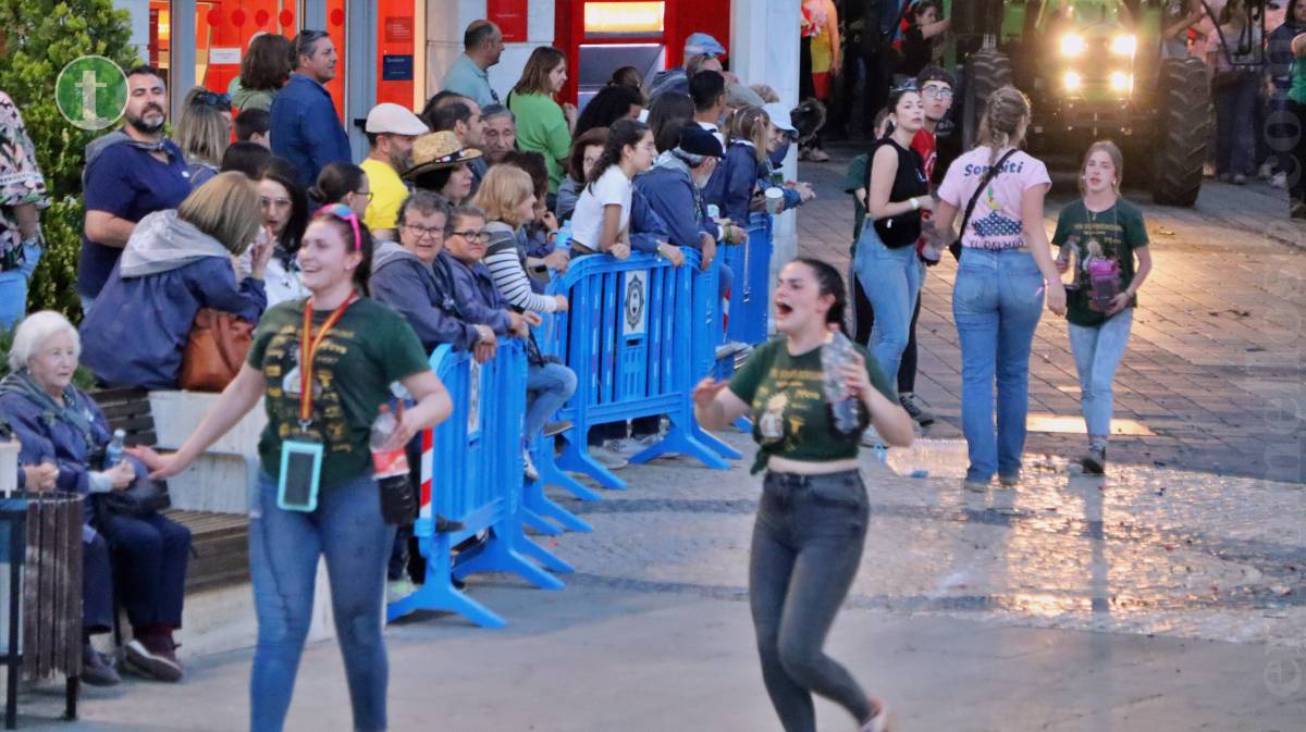 El desfile continuó con las carrozas artísticas y las carrozas de verde, protagonizadas por miles de jóvenes ataviados con sus camisetas coloreadas por el vino, bailando entre música, alegría y buen ambiente.