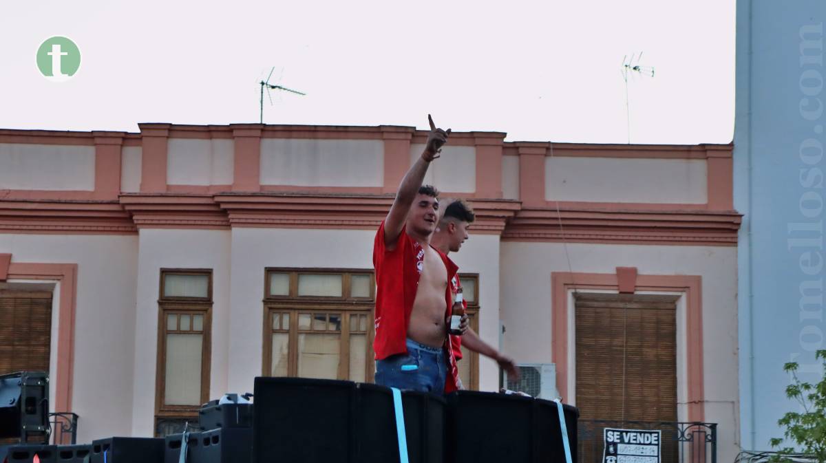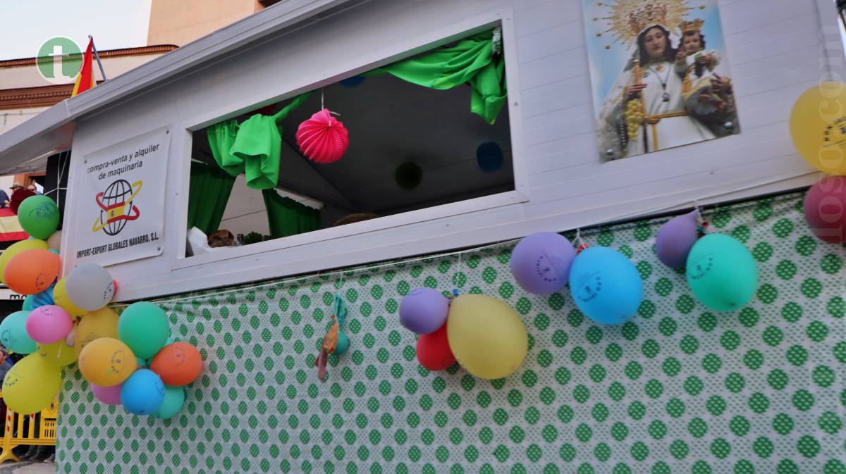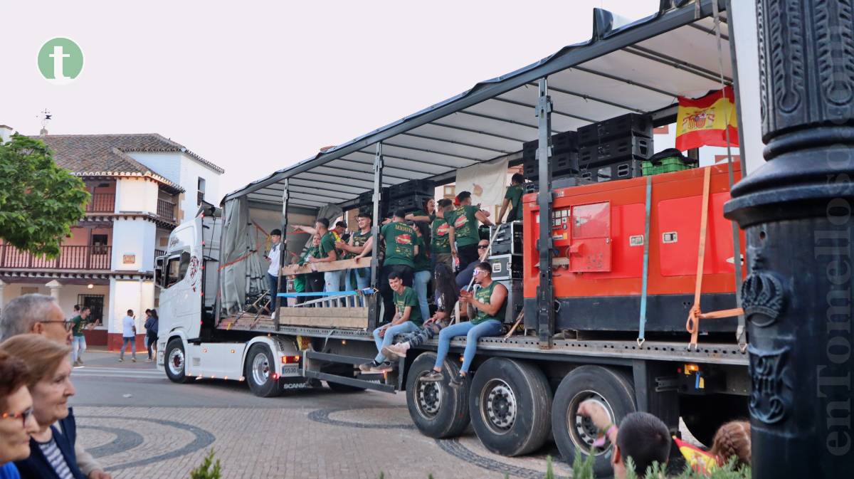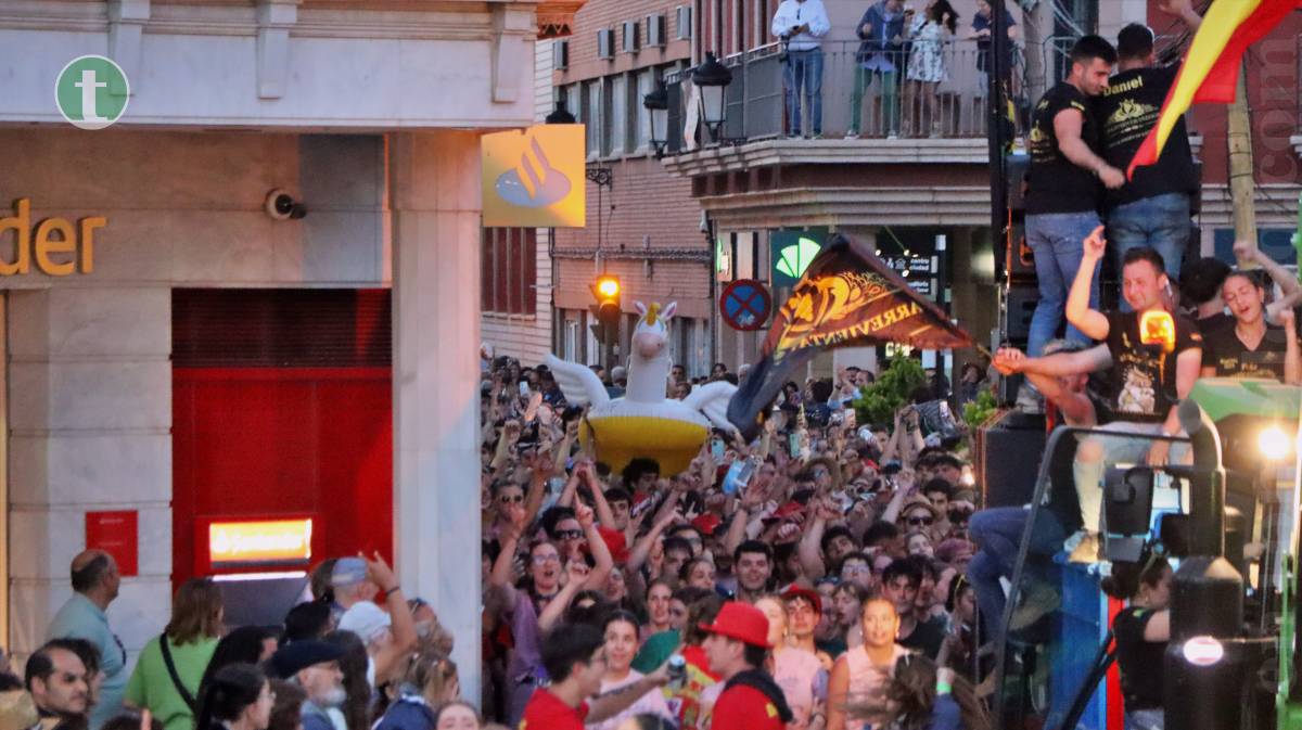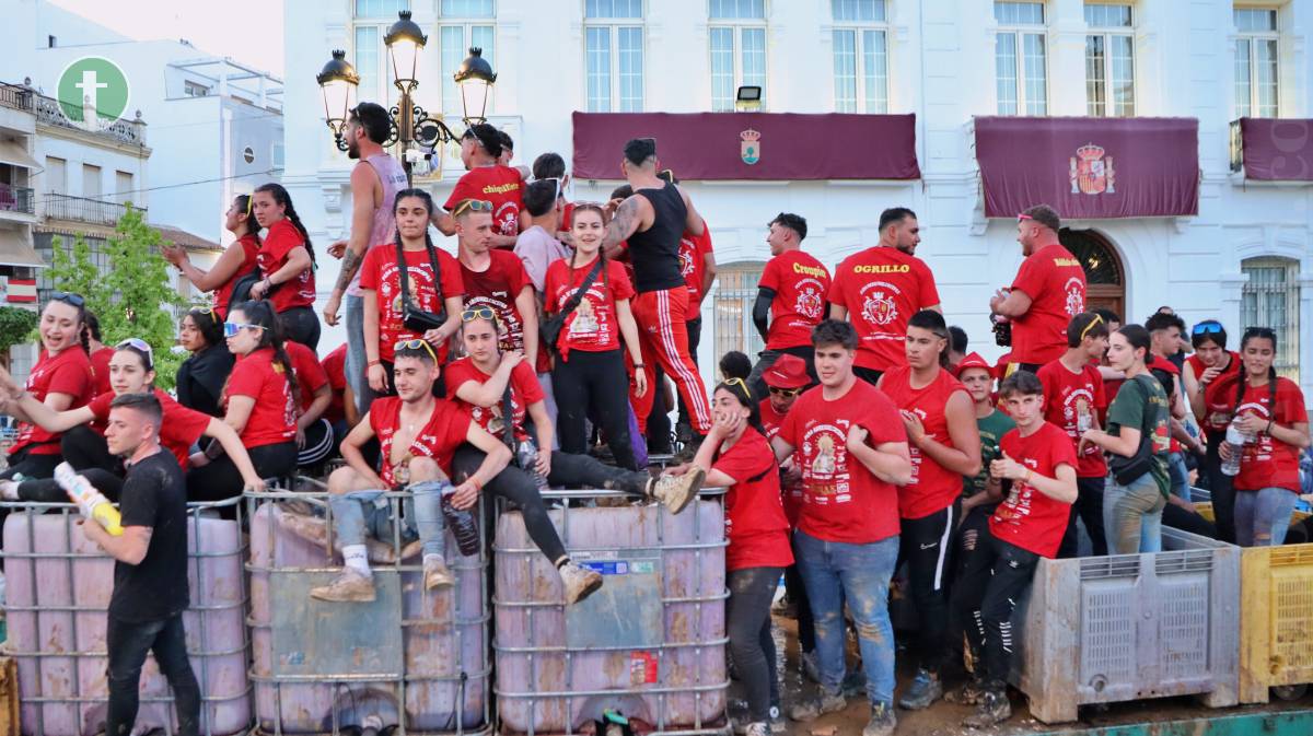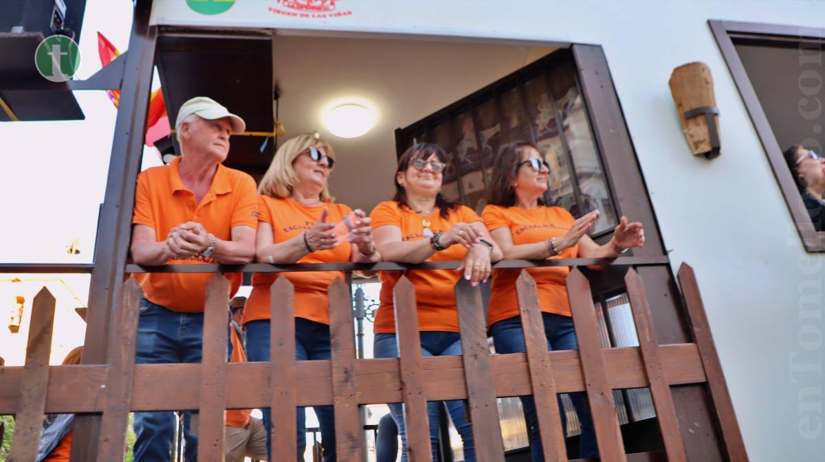 El desfile continuó con las carrozas artísticas y las carrozas de verde, protagonizadas por miles de jóvenes ataviados con sus camisetas coloreadas por el vino, bailando entre música, alegría y buen ambiente.