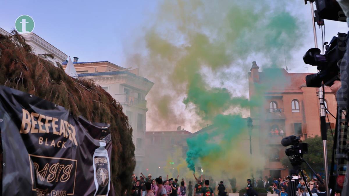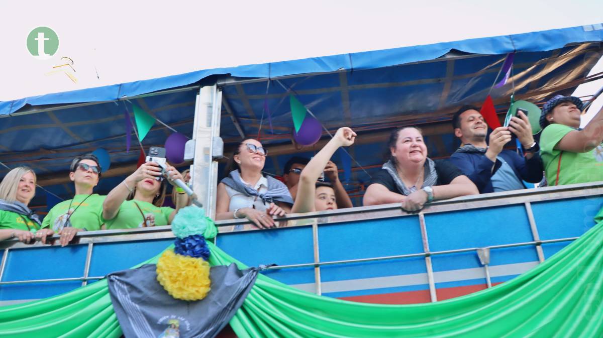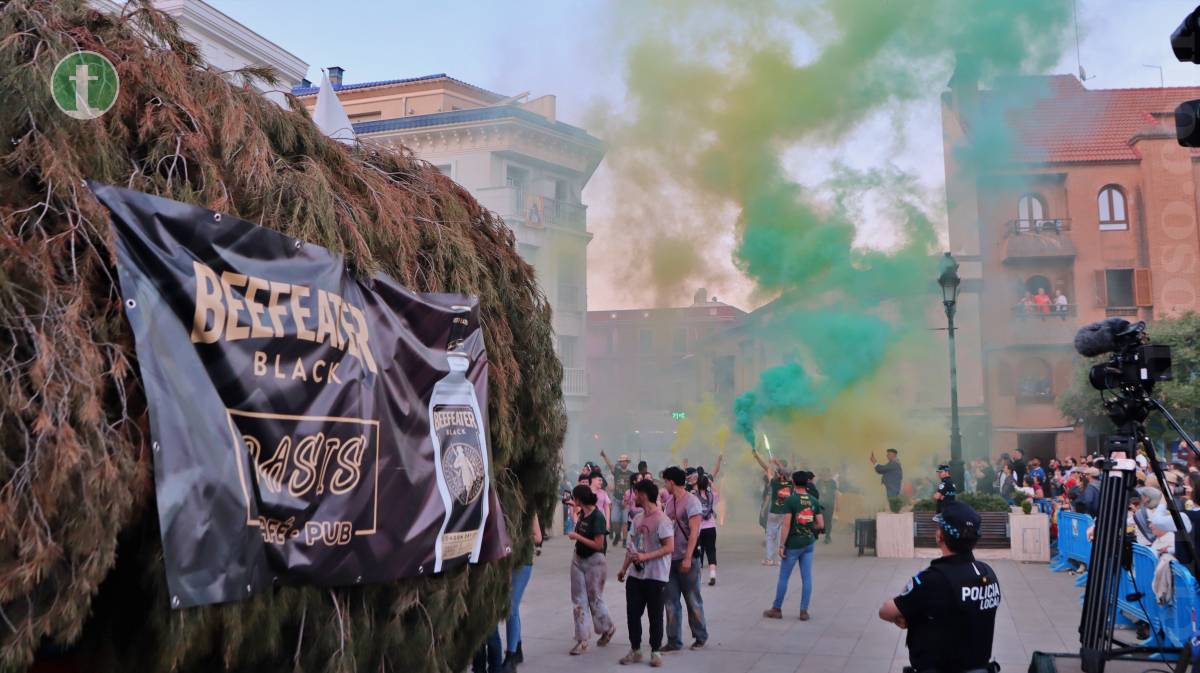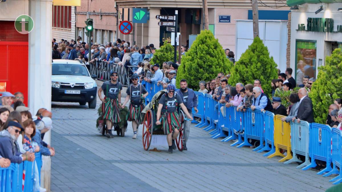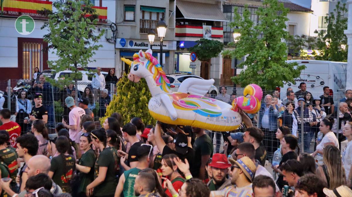 El desfile continuó con las carrozas artísticas y las carrozas de verde, protagonizadas por miles de jóvenes ataviados con sus camisetas coloreadas por el vino, bailando entre música, alegría y buen ambiente.