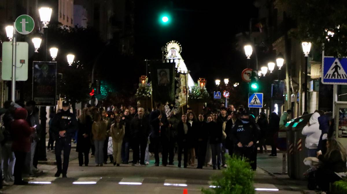 Allí, rodeada de fieles, la Virgen fue despojada de su manto de luto y, sin dejar de mirarse, ambas imágenes emprendieron juntas su camino hasta la Plaza de España. Durante todo el trayecto, las imágenes fueron acompañadas por estandartes y representantes de todas las cofradías y hermandades de Tomelloso, en un gesto de unidad eclesial y popular.
