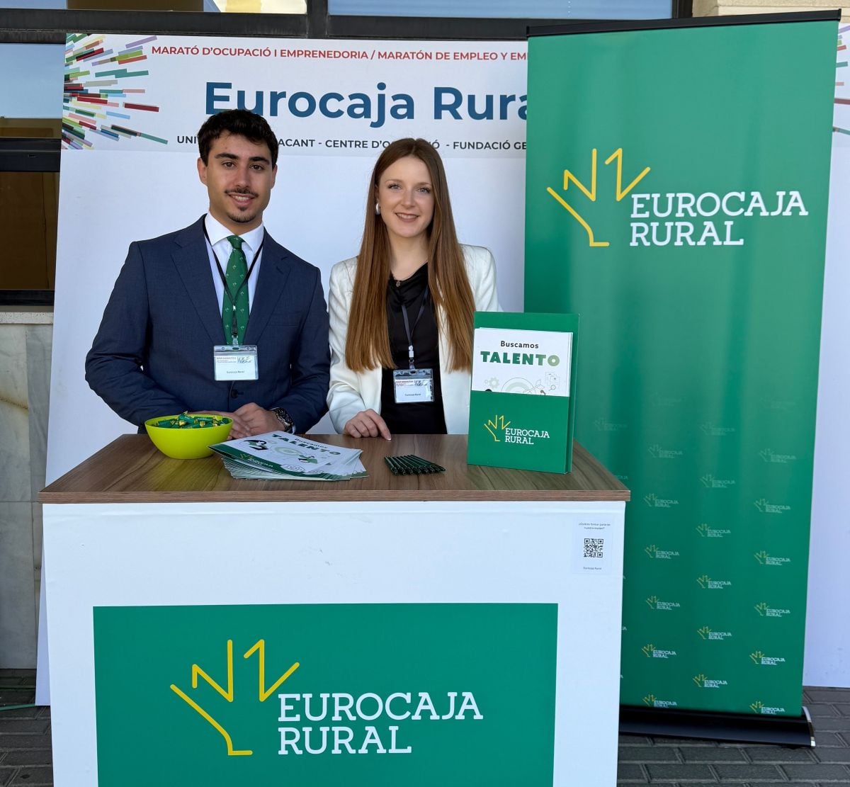 Eurocaja Rural ha ubicado un stand informativo en la XXVI edición del Foro de Empleo Universitario ‘Maratón de Empleo y Emprendimiento’, organizado por la Universidad de Alicante (UA), para que los estudiantes pueden conocer de primera mano las oportunidades laborales y de desarrollo profesional que ofrece la entidad financiera.