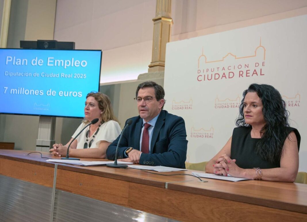 El presidente de la Diputación de Ciudad Real, Miguel Ángel Valverde Menchero, ha presentado esta mañana un Plan de Empleo propio de la institución provincial para 2025, que contará con una dotación económica de 7 millones de euros y permitirá la contratación directa de más de 1.000 personas desempleadas en la provincia. Valverde, que ha estado acompañado por la vicepresidenta responsable de Promoción Económica, Rocío Zarco, y por la vicepresidenta del área de Asistencia a Municipios, Maribel Mansilla, ha insistido en el carácter autónomo y municipalista del plan, que otorga plena libertad a los ayuntamientos para decidir tanto los perfiles a contratar como los proyectos a desarrollar.