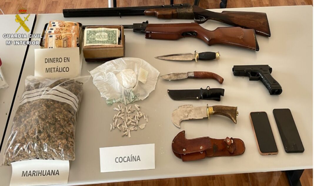 Escasos días después, con la debida autorización judicial se llevaron a cabo dos entradas y registros uno en el cortijo de Argamasilla de Calatrava y otro en el domicilio del principal investigado en Villanueva de los Infantes, interviniéndose variedad de sustancias estupefacientes, dinero, armas, etc.