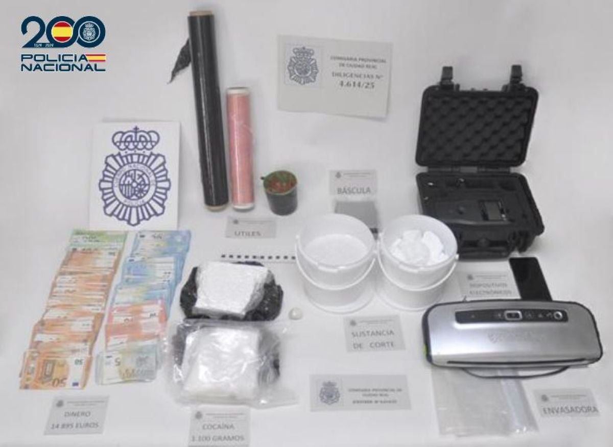 Se le han intervenido un total de 1.116 gramos de cocaína, 14.895 euros en efectivo, sustancia para la adulteración y el corte de la droga así como tres vehículos, uno de ellos ‘caleteado’.