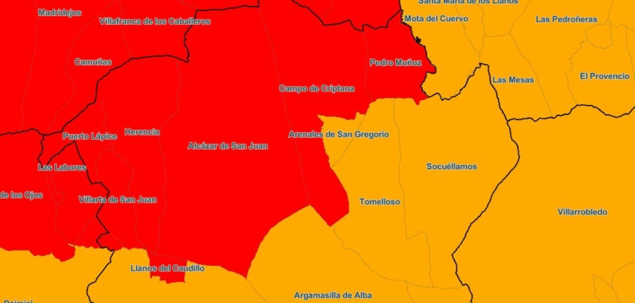 El resto de la comarca de Tomelloso estará en riesgo muy alto según este índice. Socuéllamos, Argamasilla de Alba, Manzanares o Villarrobledo son los municipios de la zona que también se encontrarán en aviso naranja durante todo el día.