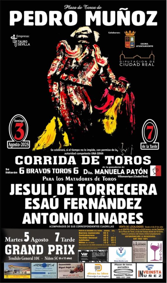 Linares compartirá cartel con Jesuli de Torrecera y Esaú Fernández. Se lidiarán seis toros de la ganadería de Doña Manuela Patón, de Villamanrique (Ciudad Real). El festejo está organizado por Tauro Sevilla y cuenta con la colaboración del Ayuntamiento de Pedro Muñoz y la Diputación de Ciudad Real.
